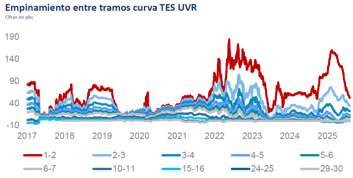 - Spread entre tramos curva TES y deuda corporativa
