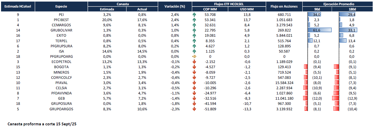 Septiembre 2025 Estimación Rebalanceo HSCOLSEL 2S25 | Se confirma ingreso de ÉXITO, PEI y TERPEL